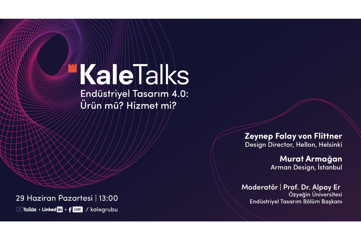 “Endüstriyel Tasarım 4.0: Ürün mü? Hizmet mi?” temalı sohbetin konukları Zeynep Falay von Flittner ve Murat Armağan olacak. 29 Haziran Pazartesi günü saat 13.00’de, Özyeğin Üniversitesi Endüstri Ürünleri Tasarımı Bölüm Başkanı Alpay Er’in moderatörlüğünde gerçekleşecek sohbet Kale Grubu YouTube, Facebook ve LinkedIn hesaplarından canlı olarak yayınlanacak.